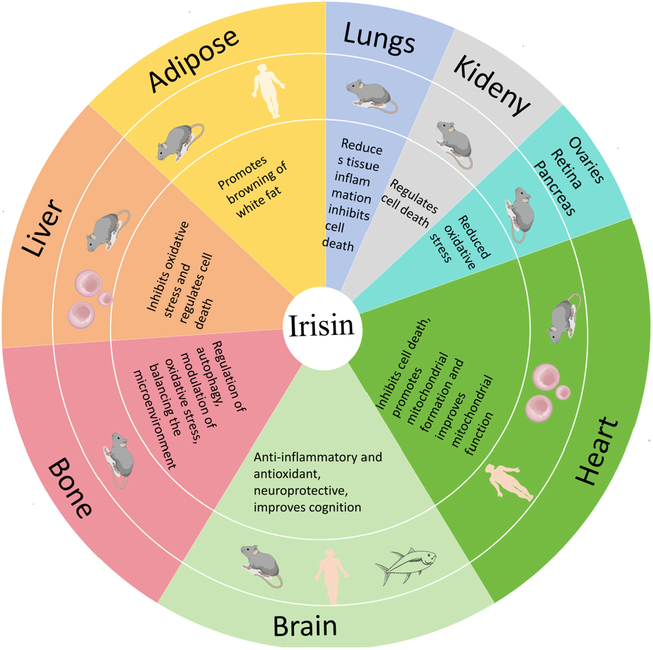 Irisin ist ein sogenanntes Myokin – ein hormonähnlicher Stoff, der von den Muskeln freigesetzt wird. Diese Ausschüttung erfolgt sowohl bei akuter Bewegung, durch die proteolytische Spaltung von FNDC5, als auch bei chronischem Training, durch die Erhöhung der FNDC5-mRNA. Durch Irisin wird die mitochondriale Funktion verbessert, oxidative Schäden reduziert und die Zellgesundheit gefördert.
